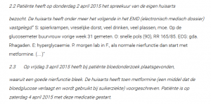 In het elektronisch medisch dossier van de huisarts werden de zaken vastgelegd zoals op de foto zijn beschreven.